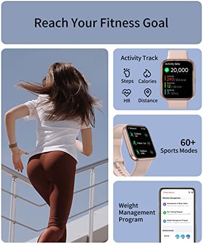 【Acitvity Tracker with 60 Workouts】This fitness tracker smartwatch will auto-track your daily steps, calores, distance, and remind you when the fitness goal is achieved. 60 sport modes could make exercise data more accurate and exhaustive. This fitness tracker will be a good partner in weight loss journey and sports trainning program