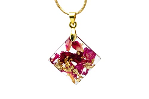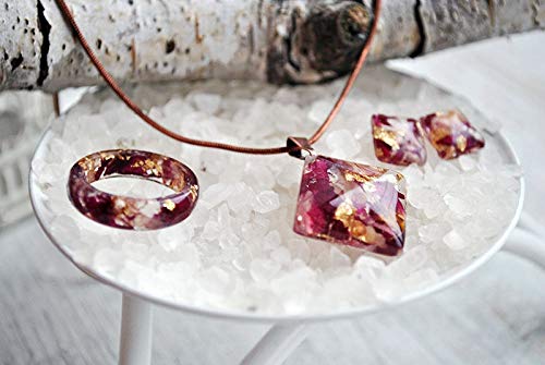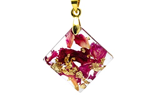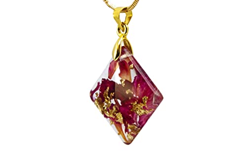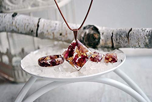present you a wonderful Eco resin necklace with red rose petals and 24K Gold. Red roses also stand for passion, true love, romance and desire. The red rose is a classic “I Love You”. Gold flakes is associated with wealth, grandeur, and prosperity, as well as sparkle, glitz, and glamour. Making my adornments I use only natural materials: routs of plants, flowers, leaves, elements of trees, moss, natural coloring matter etc.
