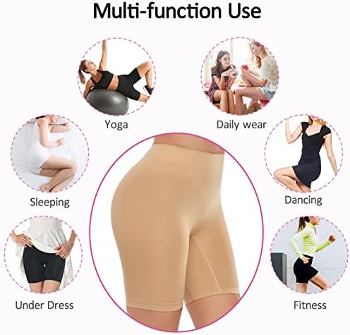 🚺Comfortable & Breathable-These women’s slip shorts are made of healthy and soft fabrics that contain 90% nylon,10% Spandex, which is light and will not roll. The full-coverage design brings ultra-soft breathable sense of touch and fit while will not produce a sense of constriction for all-day wear.