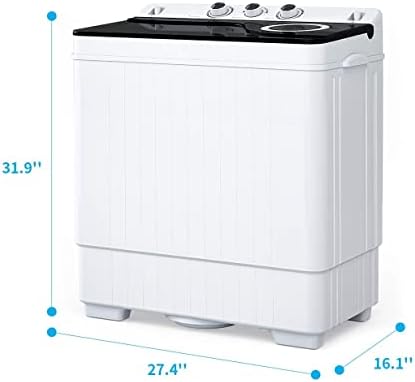 👗【Washing Capacity & Specifications】Total capacity:26 lbs(washer:18 lbs, spin cycle:8 lbs). Overall dimensions: 27.4* 16.1* 31.9 inches. Power supply: 110v/60hz, Total power: 420w(wash:280w/dry:140w). Easy operation design and easily movable