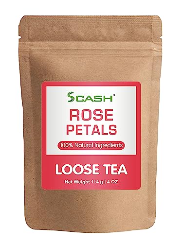 Scash 4 Ounce Dried Red Rose Petals – Pure, All Natural & Edible Rose Petals – Dried Flower Petals for Herbal Tea, Decoration, Rose Sprinkles, Topping on Cupcakes, Desserts.