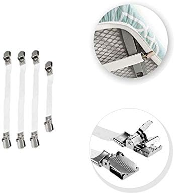 4 elastic clips for secure fit: Our ironing board cover is tightened with a drawstring and hook-and-loop fasteners, and is easy to install and remove. It also comes with four elastic clips to ensure a better fit on your ironing board.