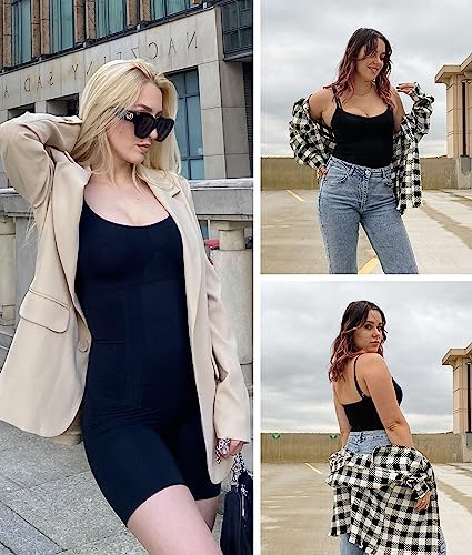 FULL CONTROL SHAPEWEAR: Body shaper bodysuit is lightweight and powerful, featuring fully bonded front panels for a tabletop flat stomach and edge-bonded side panels that offer squeeze-free slimming and easy movement. At the same time, this butt lifter shorts shapewear can help tighten your tummy and lift your buttock. The thigh compression design ensures this mid-thigh slimmer will not roll down or up.
