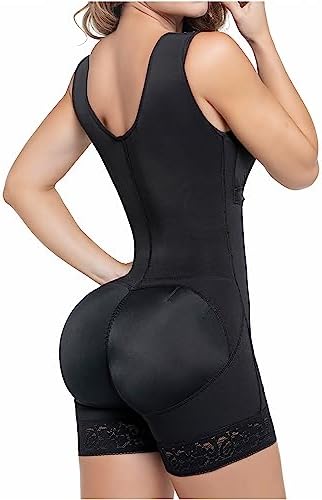🎀 SMOOTH FABRICS: Our faja girdle shapewear is made of Powernet, a fabric that will shape up your silhouette. Our full body shaper for women fabrics apply medium compression to your body, visually reducing sizes off. The hypoallergenic nylon lining of our lipo garment for women features Vitafit technology, a component that moisturizes, remineralizes and protects your skin to avoid irritation.