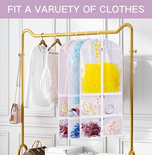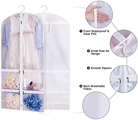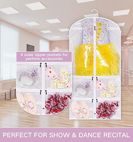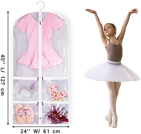 Multiple Zip Pockets: No worry about the space, there are 4 clear zipper pockets for you to store dance shoes, handbags and other accessories such as hair pieces, socks, hair ties, makeup box separately, dance costume garment bag perfect for kids girls competitions;