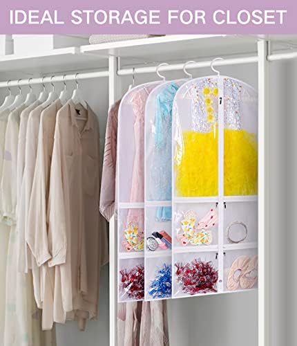 SLEEPING LAMB Kids Garment Bag for Dance Costume Clear 40 Inch Hanging Clothes Cover for Closet Storage With 4 Large Zipper Pockets for Ballet, Theatre, Competitions, 3 Packs, White