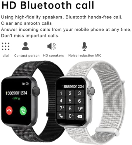 Smart Watch for Men Women Kids for Android iOS Phones Compatible with iPhone, HCHLQL Full Touch Screen Fitness Tracker with Call/SMS/Heart Rate/Blood Oxygen Monitor/Pedometer/Nylon Sport Bands (Black)