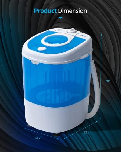 【Product Information】Washing capacity is 7.7lbs, overall dimensions:14.2*13.4*20 inches. Power supply: 110v/60hz, rated wash input power:170w. Ideal for small loads and delicate. Light weight and easily moveable.