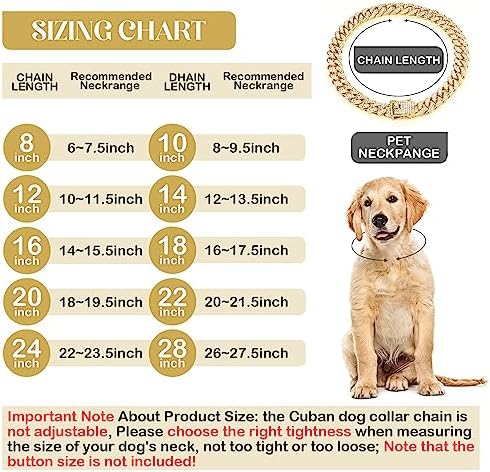 Elegant and Charming: Cuban chain dog collars are wear-resistant and not easy to rust; gold is elegant and charming, light and portable, will not burden the dog’s neck and make your dog look cuter