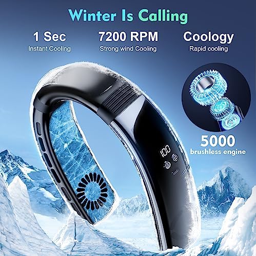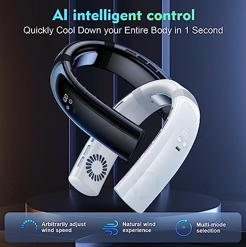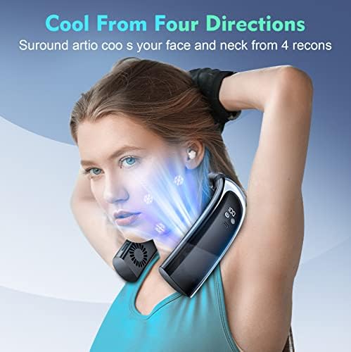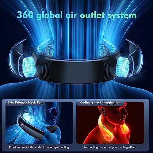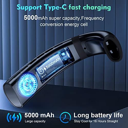 ❄️ 【5 Adjustable Mode / Ultra Quiet】-5000mAH neck fans portable rechargeable with digital display, 6-15 hours of working time perfectly meet the daily outdoor needs. Wearable neck fan with new brushless motor, noise below 30±dB, you can work and study with peace of mind and enjoy the natural breeze.