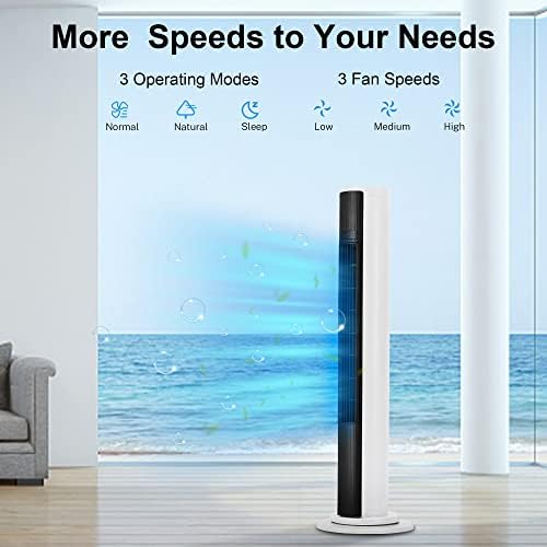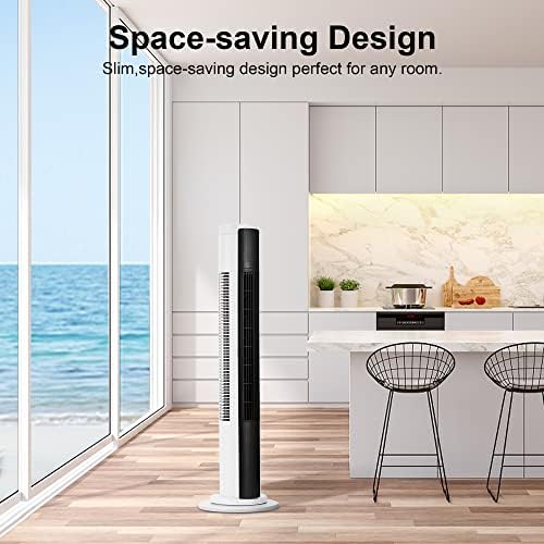 Uthfy Tower Fan with Remote, 80° Oscillating Bladeless Fan with 10H Timer, 36″ Quiet Floor Standing Cooling Fan with 3 Speeds, 3 Modes in Bedroom, Living Room,Study, Office, White