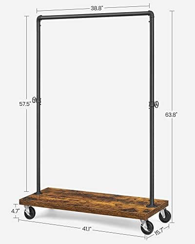 Color: Rustic Brown, BlackMaterial: Particleboard, SteelProduct Size: 41.1”L x 15.7”W x 63”H (104.5 x 40 x 160 cm)Product Weight: 23.1 lb (10.5 kg)Max. Static Load Capacity of Hanging Rail: 198 lb (90 kg)Max. Static Load Capacity of the Shelf: 55 lb (25 kg)