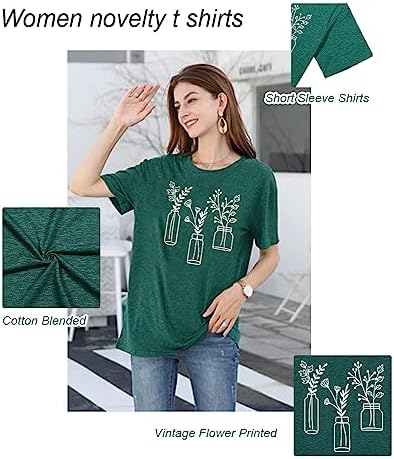 🌸【Soft Fabrics】This summer flower vase graphic t shirt is made of high-quality material. Soft and smooth. Cotton Blend. Comfortable and has a good stretch. Cute novelty wildflower tee tops. Soft fabric with a little stretchy, breathable to wear. It’s not only lightweight but also absorbs sweat. Perfect for Relaxed Everyday Wear.