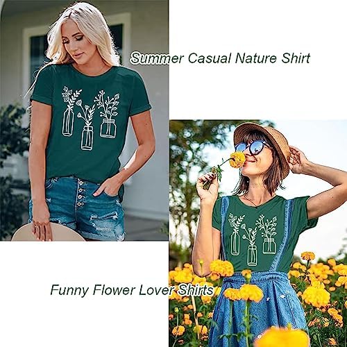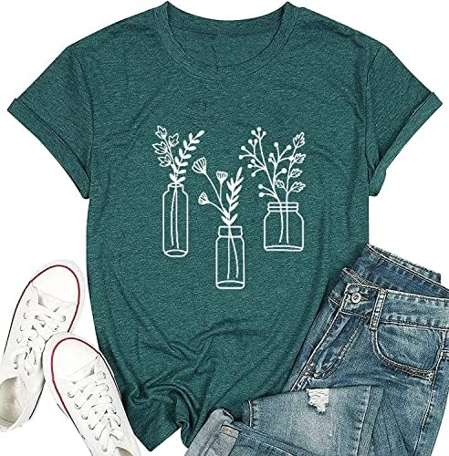 Women’s Flower Vase Tee Cute Flower Bouquet Graphic T-Shirts Novelty Funny Clothes Athletic Short Sleeve Casual Tops