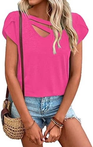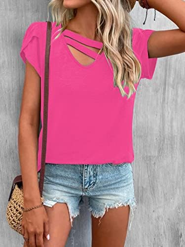 Womens Petal Sleeve Casual Basic Tops Fashion V Neck Summer Tops for Women 2023