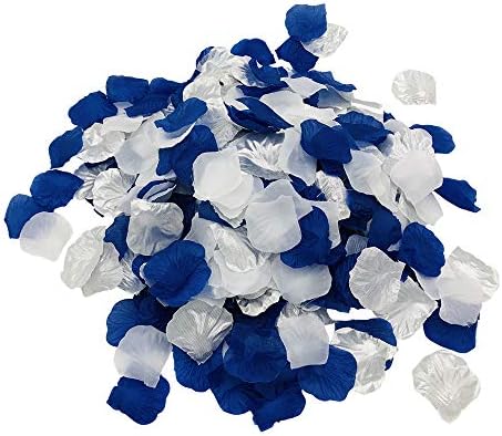 zorpia 1200Pcs Royal Blue Silver White Silk Rose Petals Artificial Flower Petals Table Scatter Aisle Runner Wedding Bridal Shower Graduation Bachelorette Celebrate Boy Baby Shower Decoration